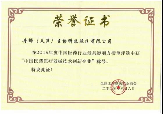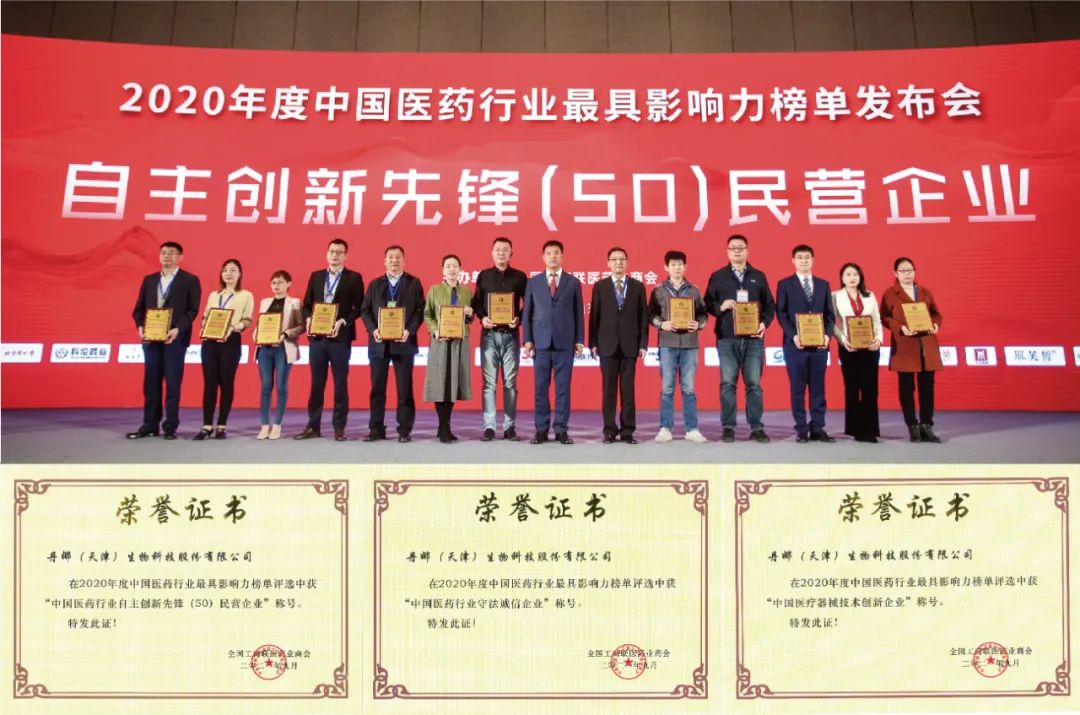 荣获2020年度中国医药行业自主创新先锋(50)民营企业、2020年度中国医疗器械技术创新企业、2020年度中国医药行业守法诚信企业等3个奖项