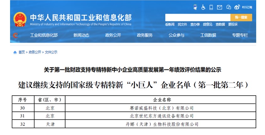 喜讯!丹娜生物再获国家工信部国家级专精特新“小巨人”重点支持