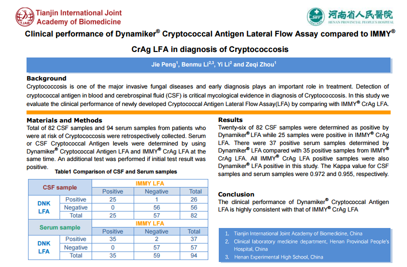 Clinical performance of Dynamiker® Cryptococcal Antigen Lateral Flow Assay compared to IMMY® CrAg LFA in diagnosis of Cryptococcosis