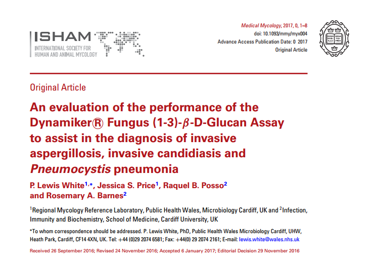 An evaluation of the performance of the Dynamiker Fungus (1-3)-β-D-Glucan Assay to assist in the diagnosis of invasive aspergillosis, invasive candidiasis and Pneumocystis pneumonia